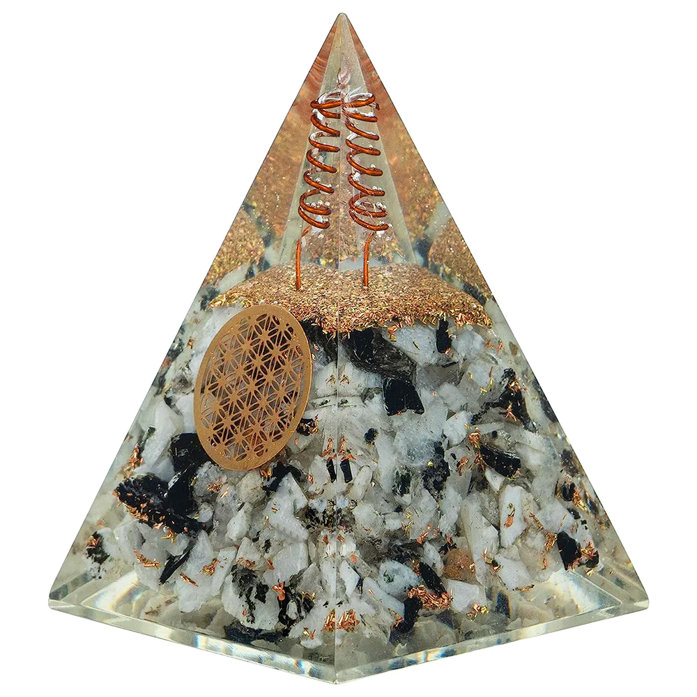 Black Tourmaline Orgonite Pyramid with Clear Quartz Crystal and Copper Coil